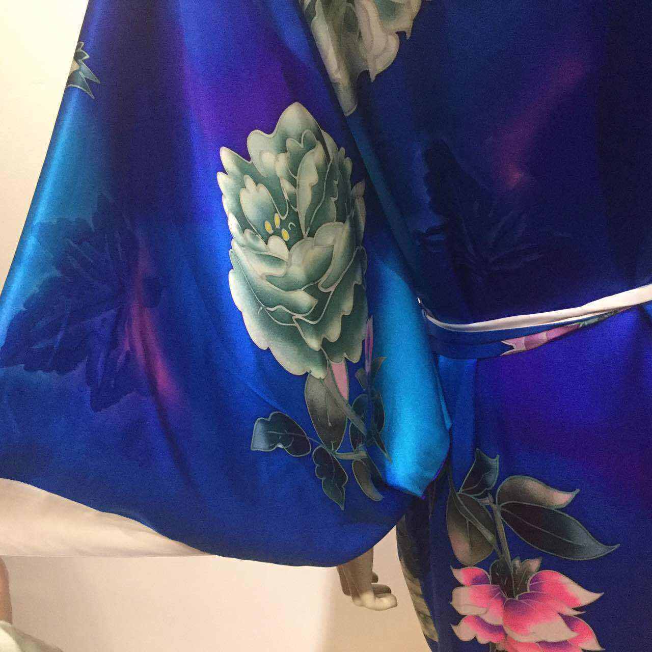 Für diesen Kimono wird 7 Meter Lange erstklassige Satin-Seide verbraucht.